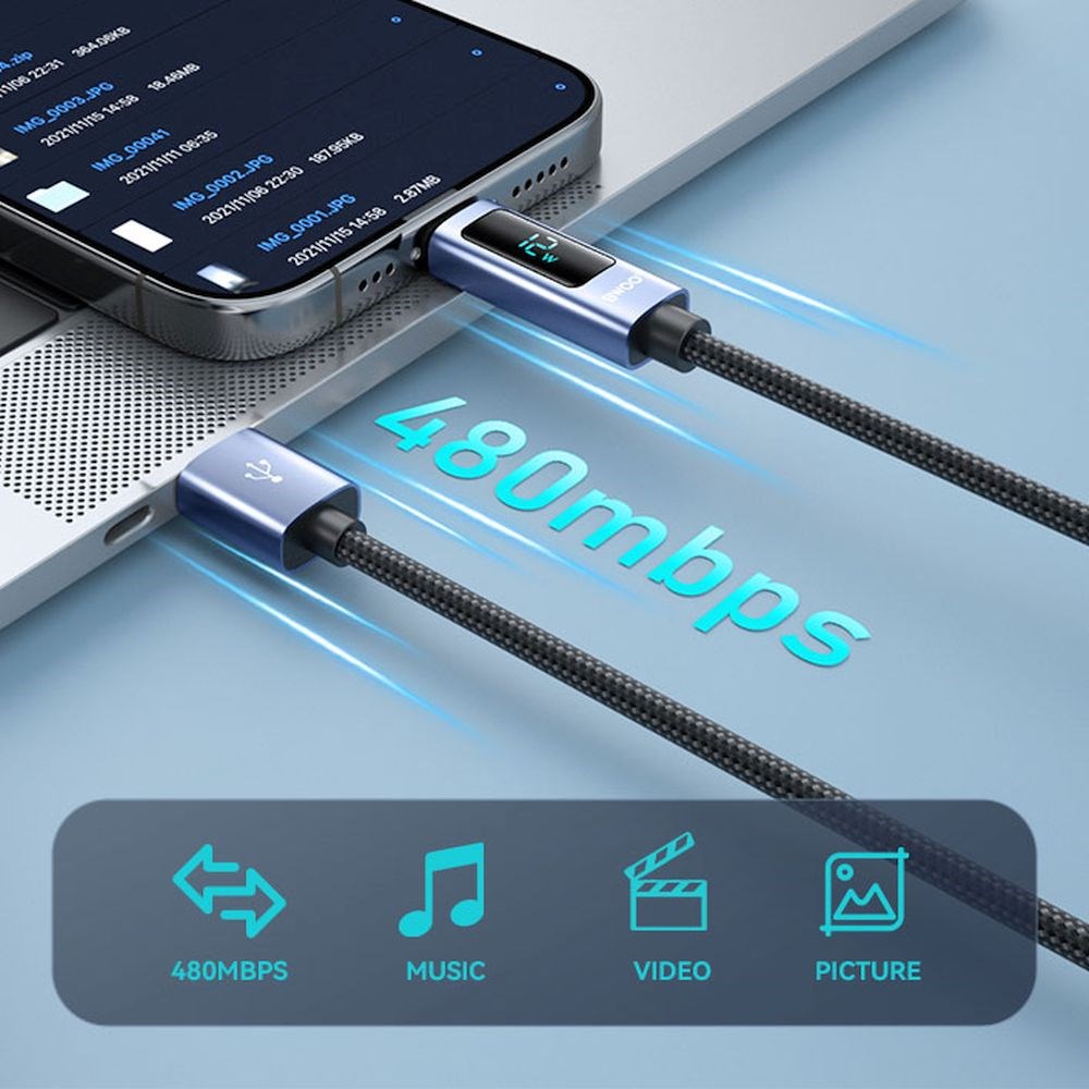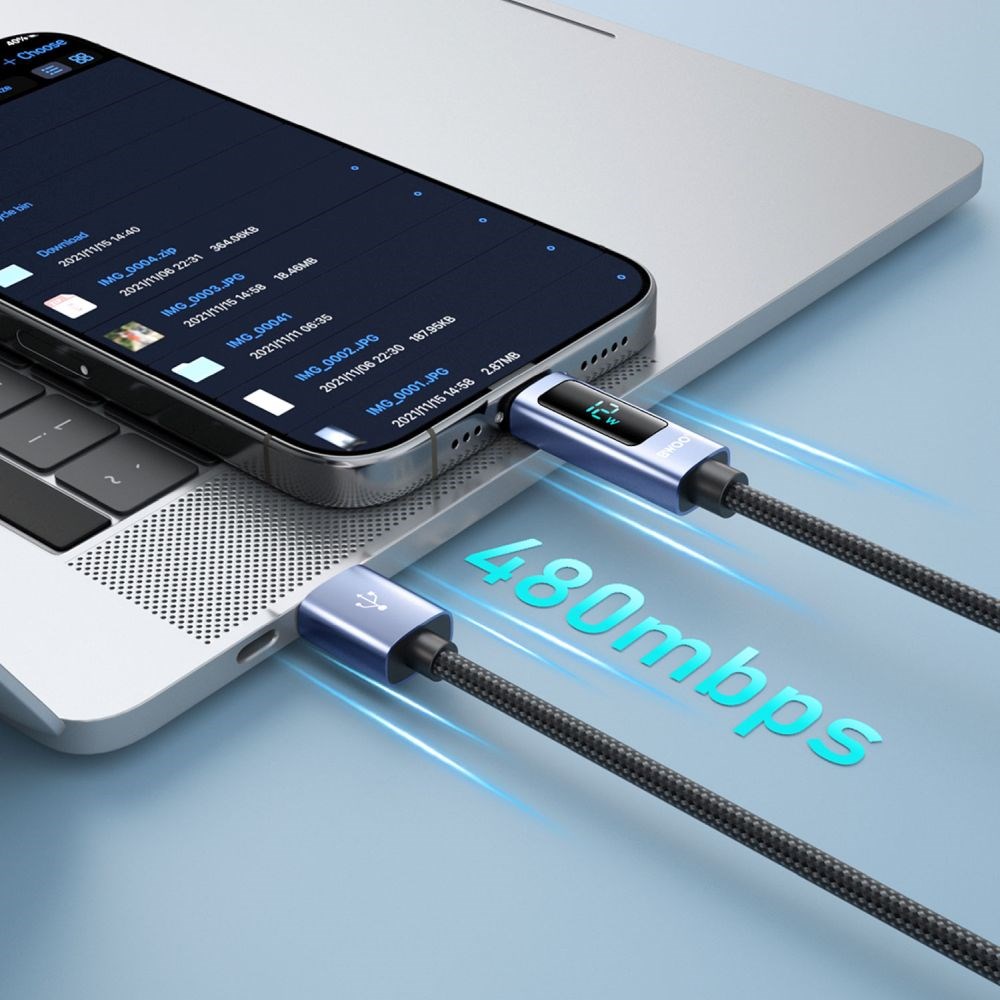 Također nudi brz prijenos podataka s maksimalnom brzinom prijenosa podataka do 480 Mb/s tijekom punjenja.