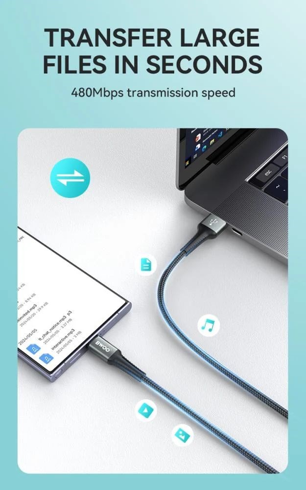S brzinom prijenosa podataka od 480 Mbps, omogućuje brzo i besprijekorno dijeljenje datoteka, bilo da sinkronizirate dokumente, videozapise ili glazbu.