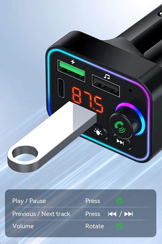 Auto punjač USB-A i USB-C i radio FM odašiljač