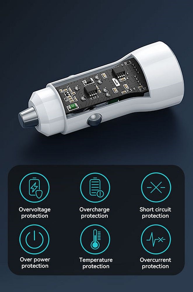 Zahvaljujući konfiguraciji dvostrukih pametnih čipova, punjač može automatski prepoznati podržane uređaje i inteligentno dodijeliti izlaznu snagu za sigurno i učinkovito punjenje dva uređaja punom brzinom istovremeno bez pregrijavanja, prekomjernog punjenja, prekomjerne struje, kratkih spojeva i još mnogo toga.