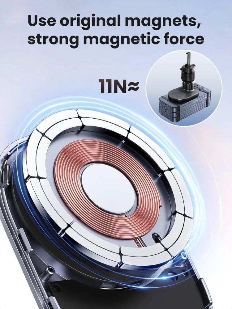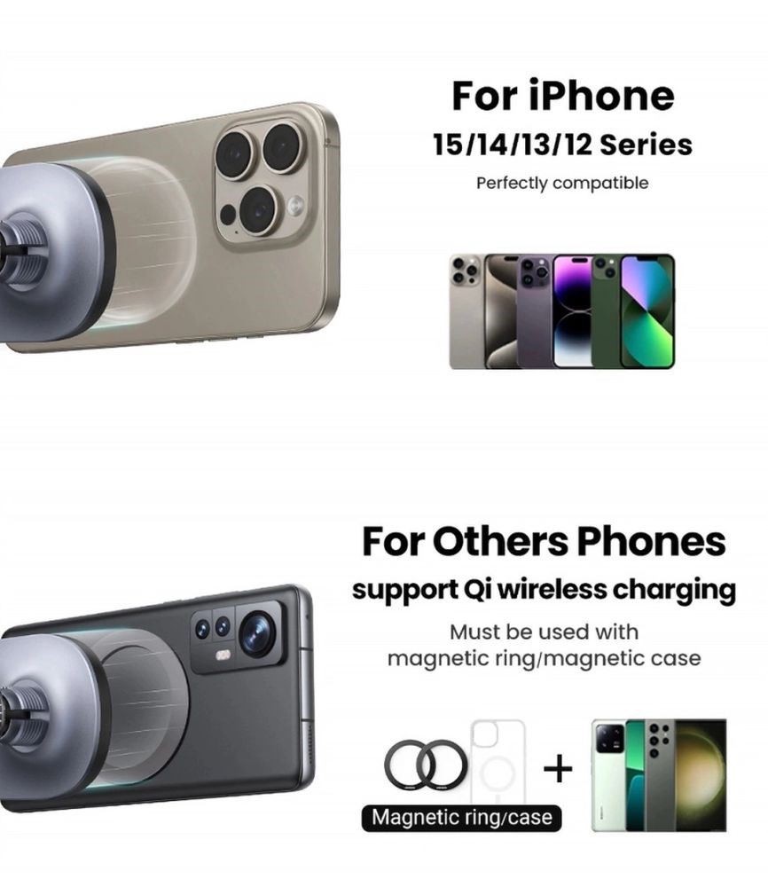 Sve je izrađeno od visokokvalitetnih materijala (ABS + PC) i dizajnirano za Apple pametne telefone s MagSafe sustavom, a kompatibilan je s i s Qi tehnologijom, odnosno svim telefonima koji imaju opciju induktivnog punjenja.