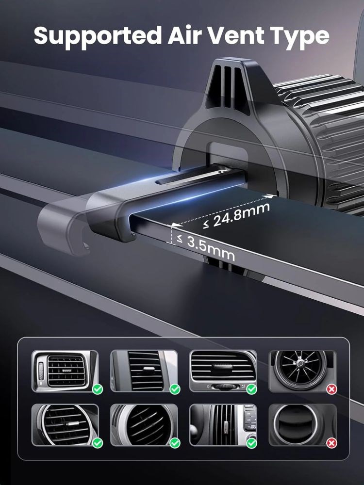 Kompatibilan s mnogim ventilacijskim otvorima. Držač ima duguljastu kuku koja odgovara vertikalnim i horizontalnim rešetkama