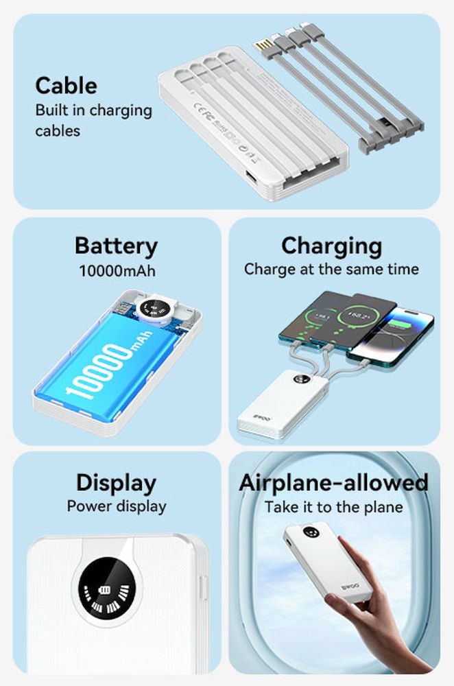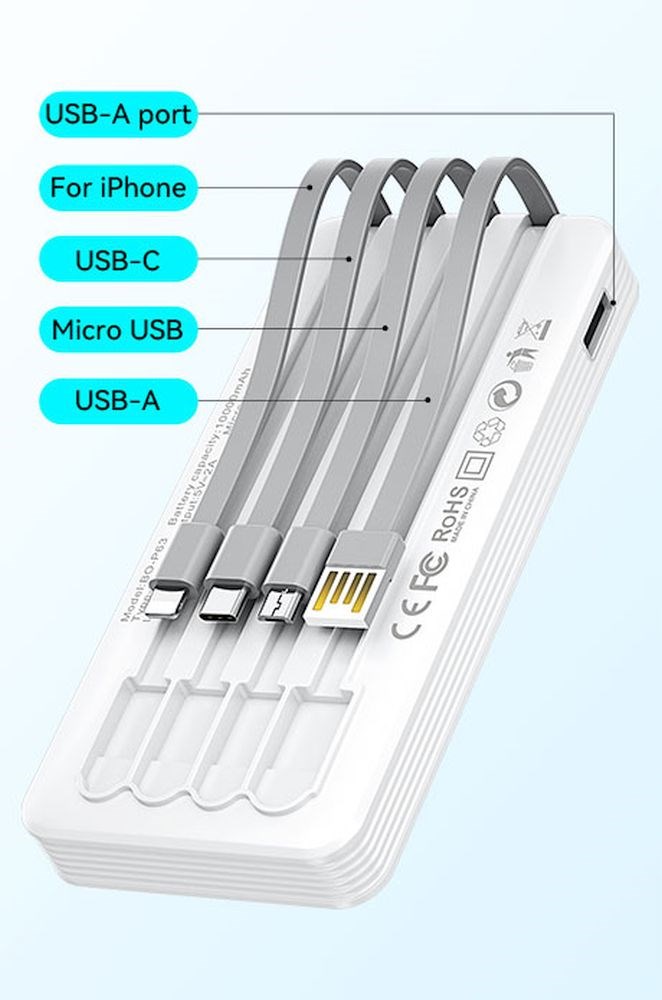 Power Bank 10,000 mAh s 4 ugrađena kabela