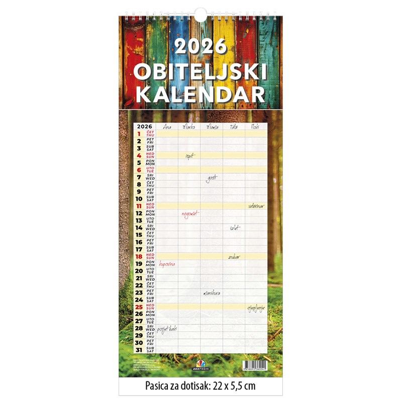 Zidni dugi obiteljski kalendar