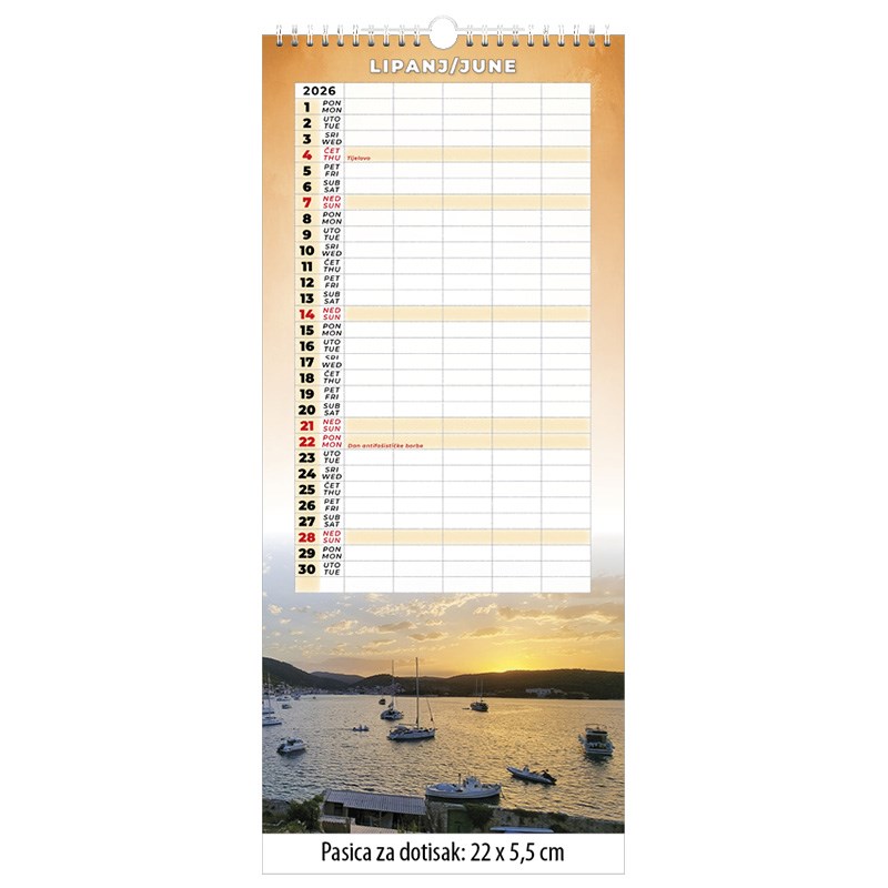 Zidni obiteljski kalendar s mogućnošću upisa obaveza i podsjetnika.