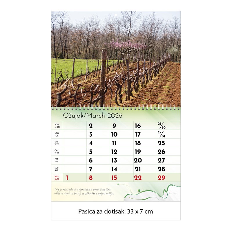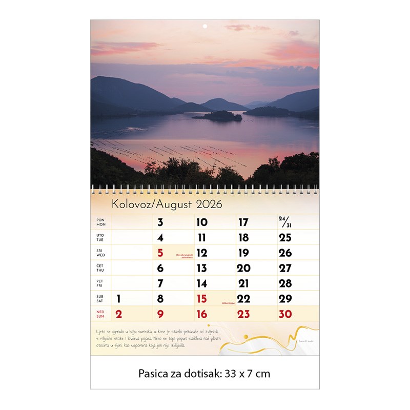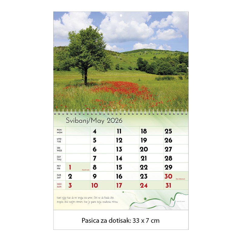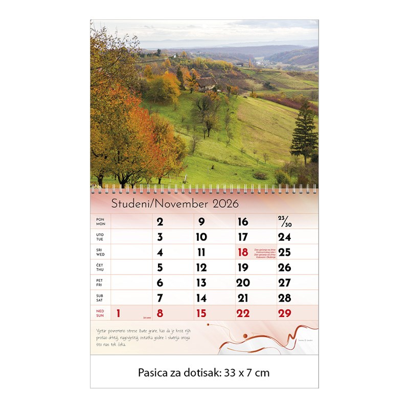 Zidni kalendar motivom ljepota prirode.
