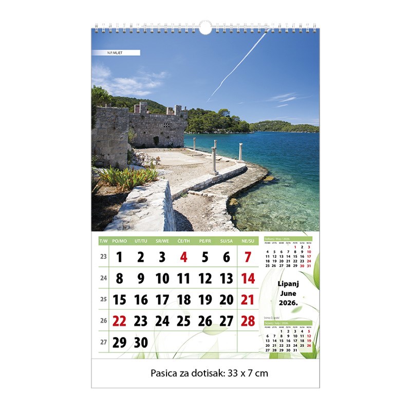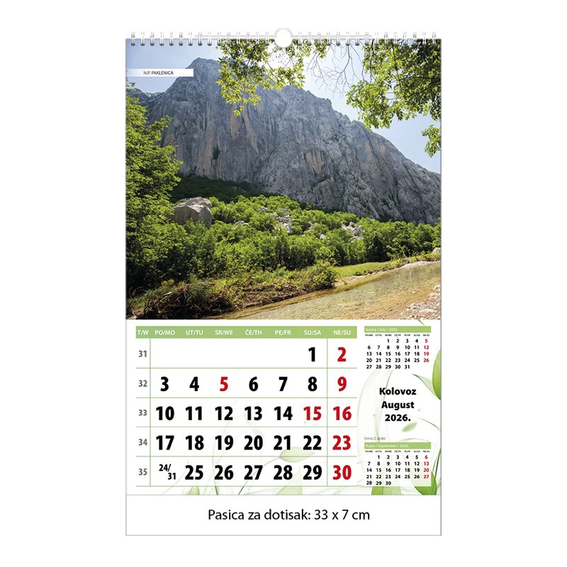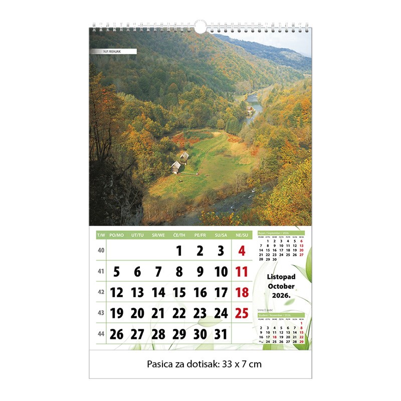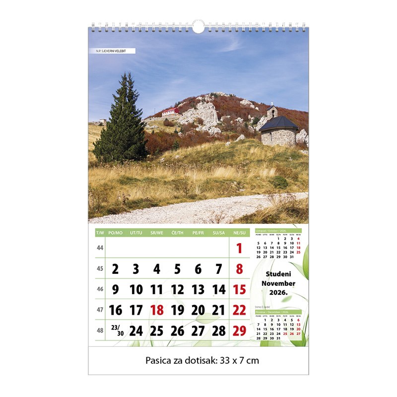 Zidni kalendar motivom hrvatskih nacionalnih parkova i parkova prirode.