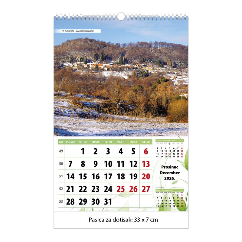 Mogućnost dotiska na pasicu na dnu kalendara.