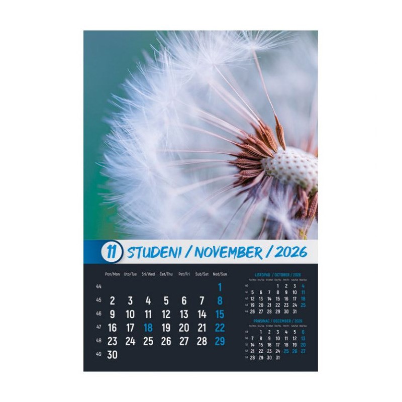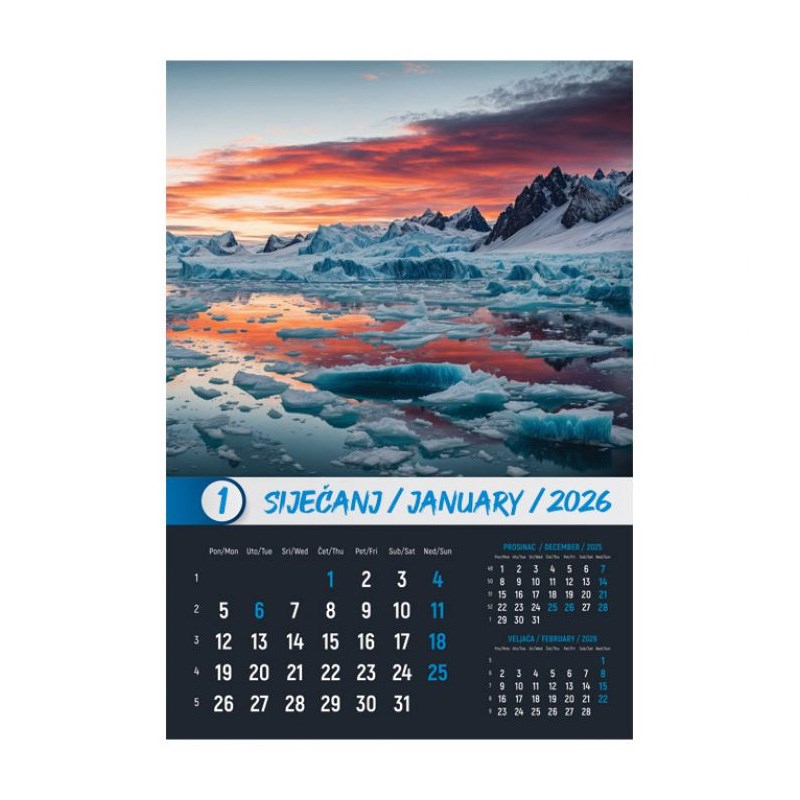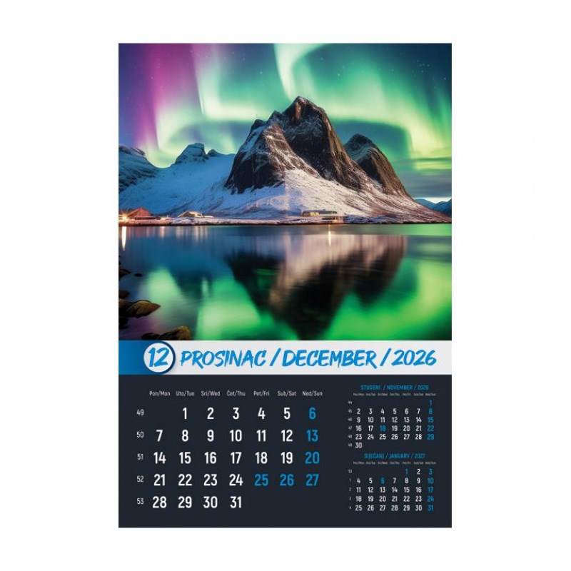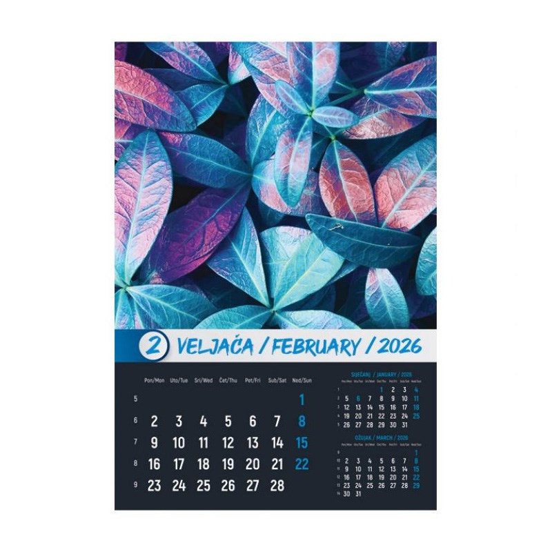 Zidni kalendar od 13 listova sa spiralom.