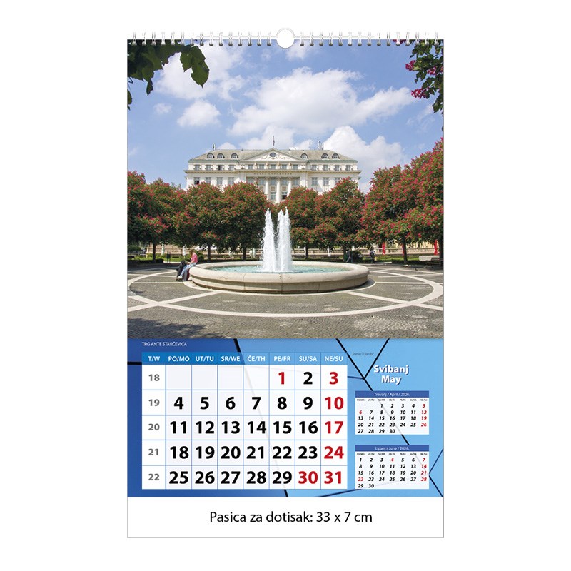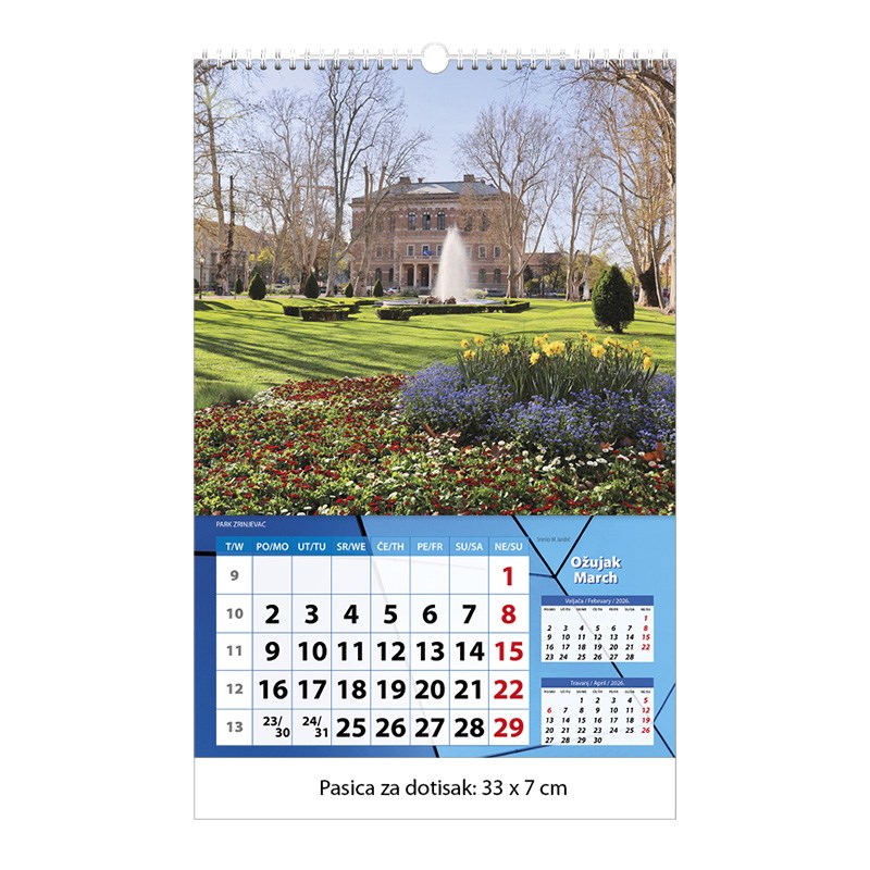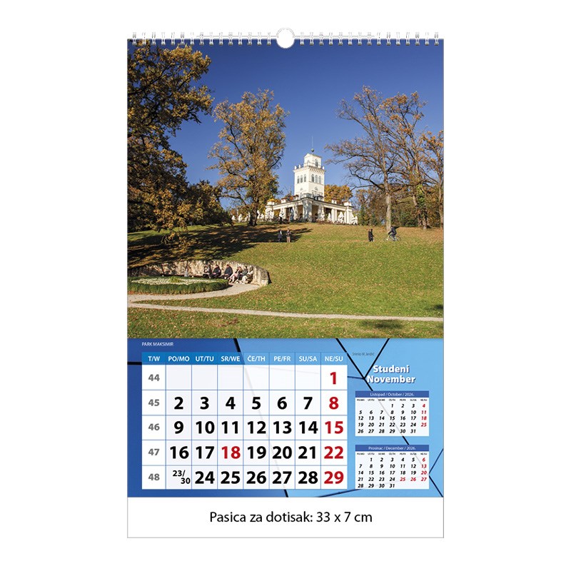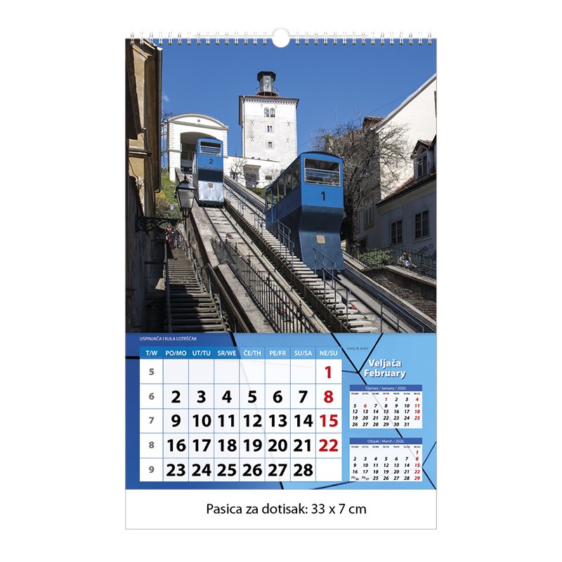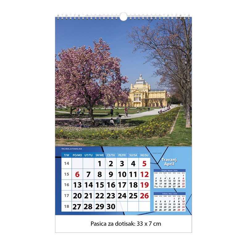 Zidni kalendar motivom Zagreba.