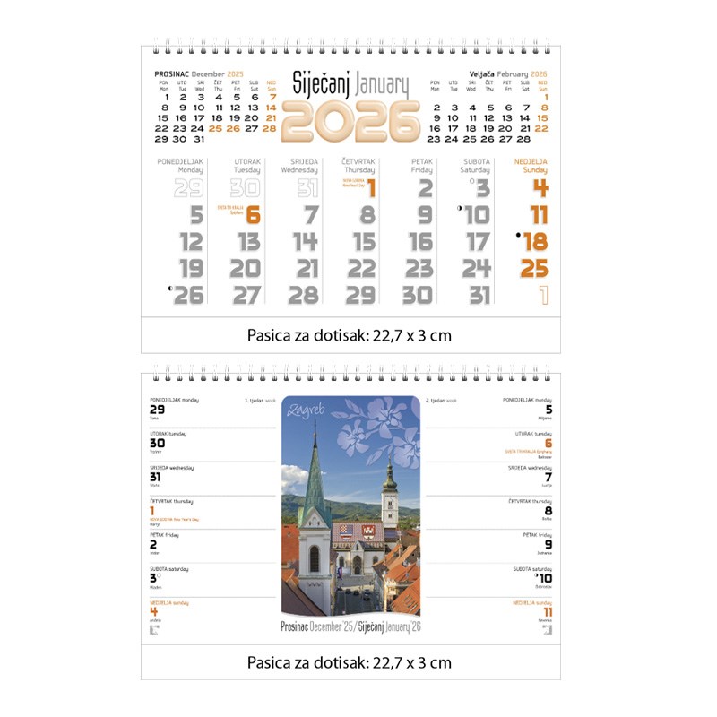 Stolni planer dvotjednik, s motivom Hrvatske.