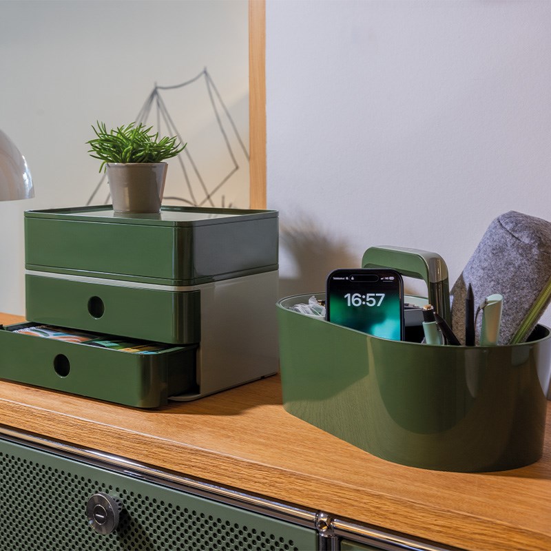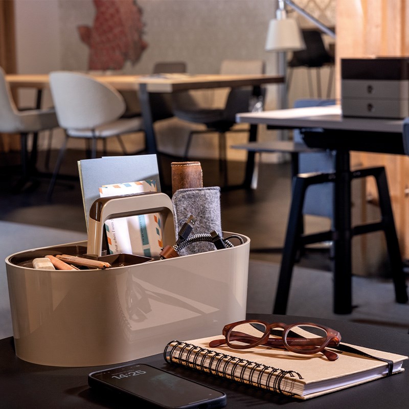HAN Toolbox LOFT je odgovor na novi način rada i trendove kao što je dijeljenje stola i hibridni rad na raznim lokacijama. Kutija za pribor LOFT osigurava više fleksibilnosti na radnom mjestu - kod kuće i u uredu.