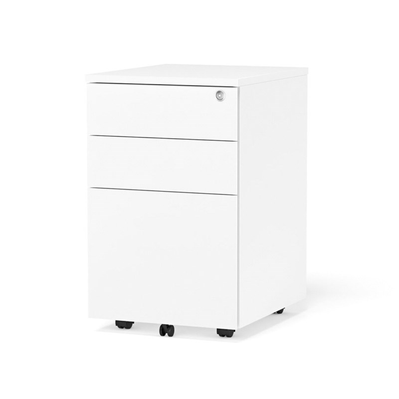Elegantan i moderan ladičar s tri ladice, bravicom, umetkom za olovke i skrivenim ručkama. Tri ladice nude dovoljno prostora za osnovno skladištenje. Podnožje od ABS plastike može se koristiti za spremanje sitnica poput gumice, olovke, USB-a... Donja ladica je veća i u nju možete staviti dokumente A4 formata. Ugrađena brava osigurava sigurnost, a kotačići će vam pomoći da ga premjestite na drugo mjesto. Prince ladica dolazi kompletno sastavljena, potrebno je samo montirati kotačiće.