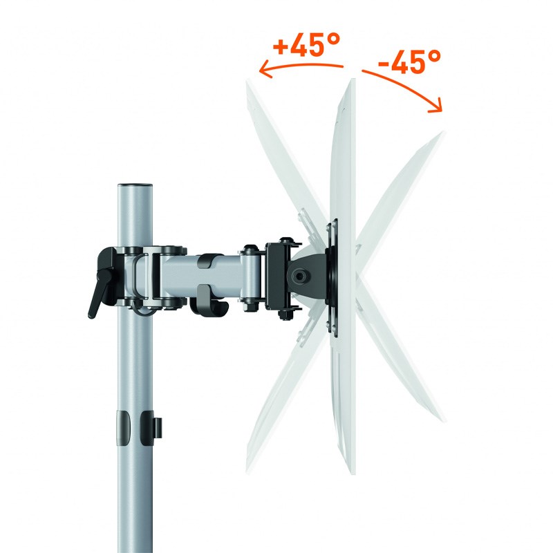 Nosač monitora za 2 zaslona s mogućnosti pojedinačne montaže putem pričvršćivanja vijcima ili stezaljke za stol. Visina, nagib i položaj monitora mogu se lako i pojedinačno podesiti kako bi se olakšao ergonomski rad. Može se rotirati za 360° za rad u portretnom ili pejzažnom načinu.