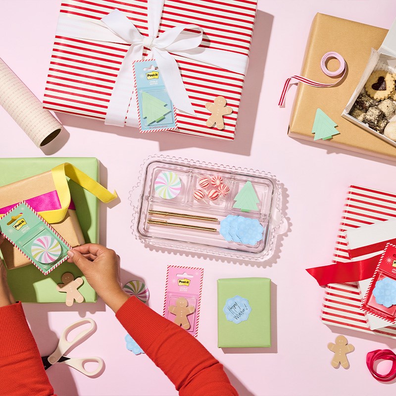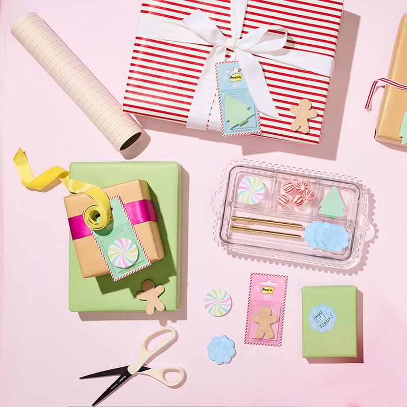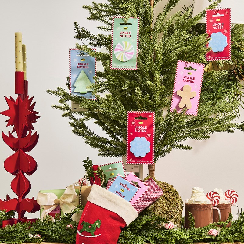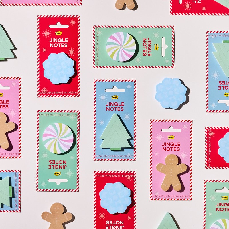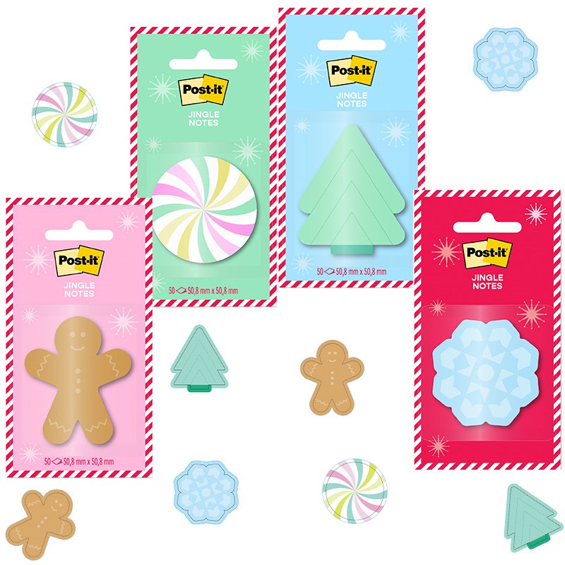 Samoljepivi listići u 4 različita oblika blagdanskog dizajna. Dostupni u oblicima slatkiša, medenjaka, bora i pahuljica kako biste svojim podsjetnicima i blagdanskim čestitkama dodali dašak boje i veselja.