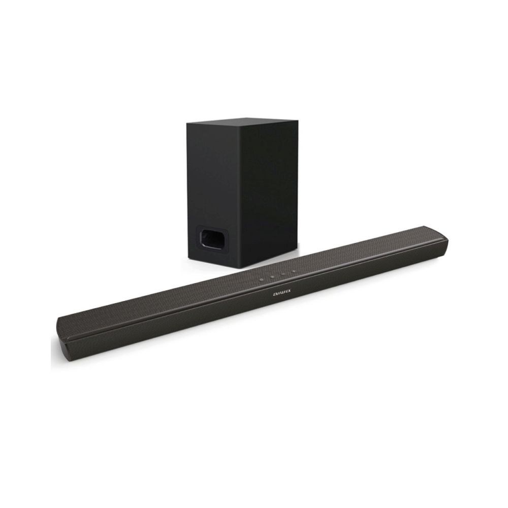 Aiwa HE-1200SW je luksuzni 2.1-kanalna soundbar s bežičnim subwooferom. Uz snažno digitalno pojačalo od 120 W RMS i bežični subwoofer od 60 W, pruža bogat zvuk s niskom distorzijom
