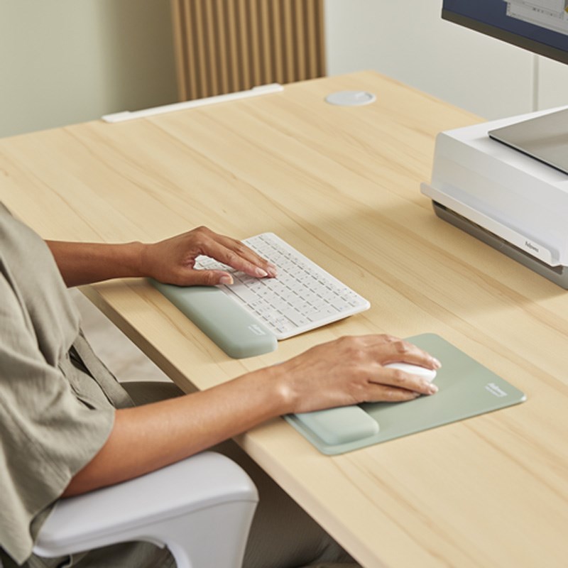 Fellowes Breyta™ podloga kombinira preciznu površinu za miša s mekanim, ergonomskim odmorištem za zapešće. Dizajnirana je da podigne vaš zglob u prirodan položaj, čime se smanjuje pritisak na karpalni kanal i sprječava zamor tijekom dugotrajnog rada tijekom dugotrajnog rada za računalom. Posebnost ove podloge je ugrađena Microban® tehnologija koja aktivno sprječava razvoj bakterija na površini tkanine, osiguravajući higijensku sigurnost 24/7 što je čini idealnim izborom za urede i frekventna radna mjesta. Izrađena od 83% recikliranog materijala (post-consumer recycled), podržavajući vašu održivu nabavu. Glatka površina omogućuje besprijekoran rad svih vrsta optičkih i laserskih miševa. Prošiveni rubovi sprječavaju listanje materijala, osiguravajući dug vijek trajanja.