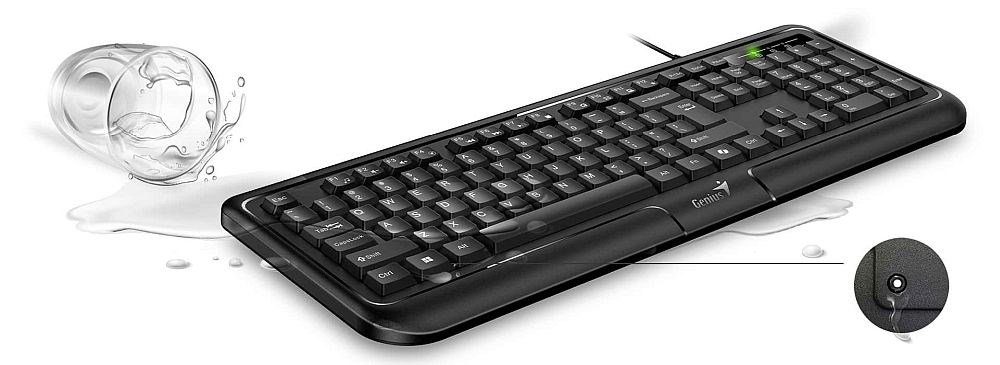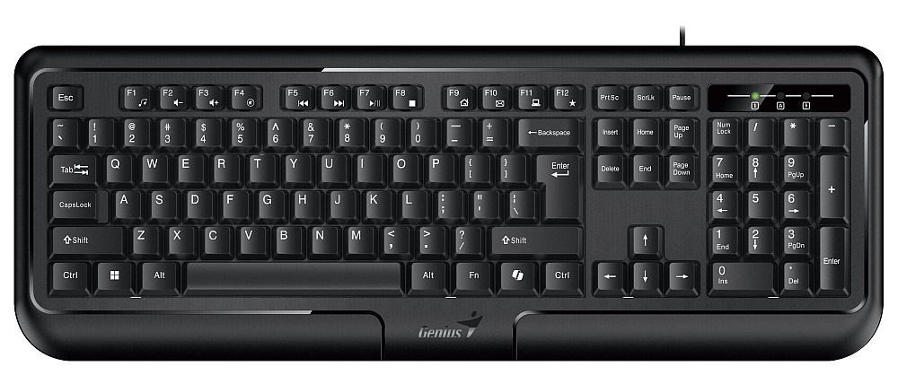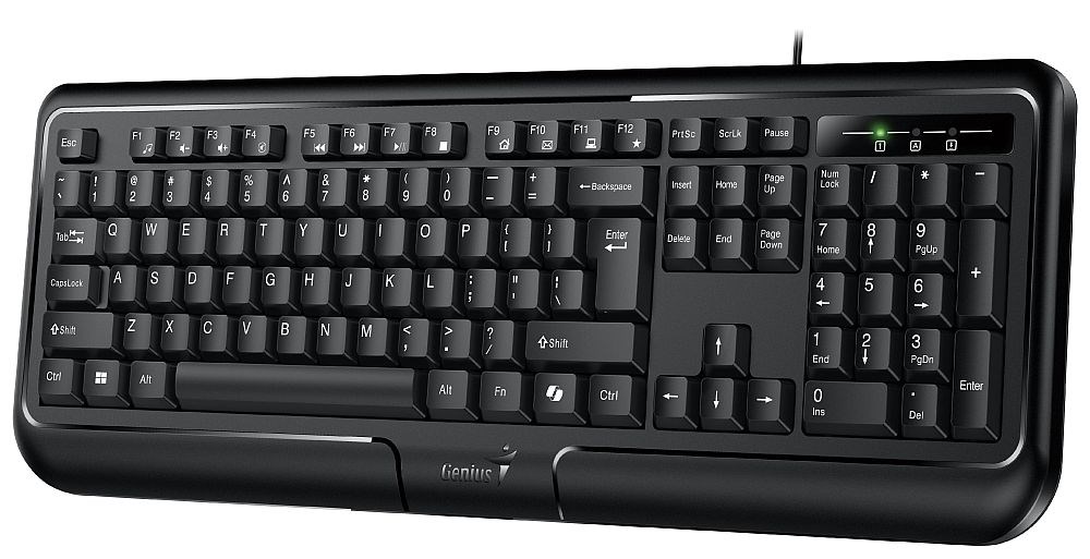Standardna žičana tipkovnica pune veličine i elegantnog dizajna s malim naslonom za dlanove, namijenjena za svakodnevnu upotrebu koja ima nisko-profilne, konkavne, tihe tipke, ugodne pod rukom.
