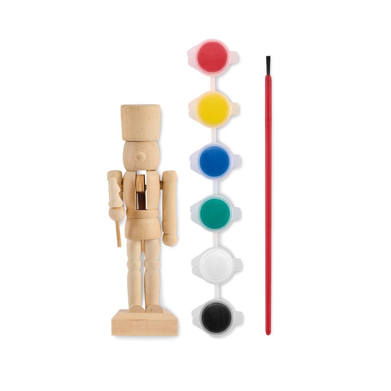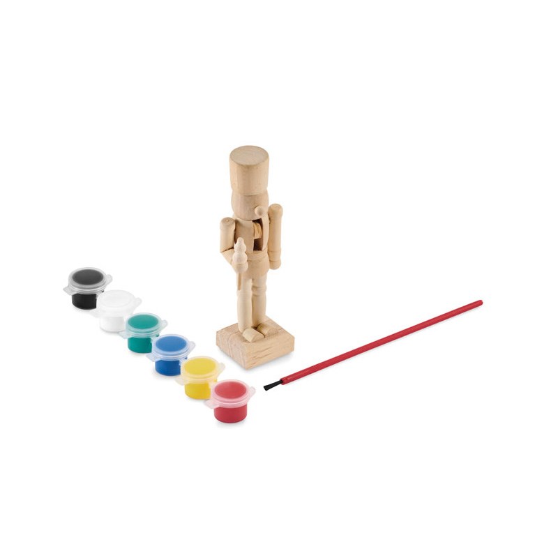 Set za slikanje s likom Orašara u drvu. Sadrži 6 boja na bazi vode i 1 kist.