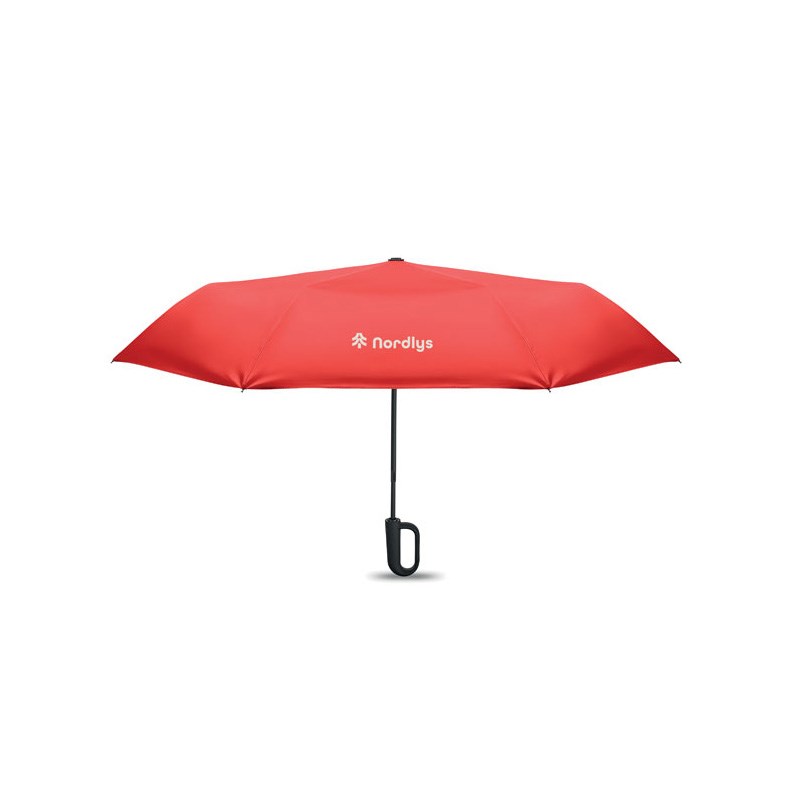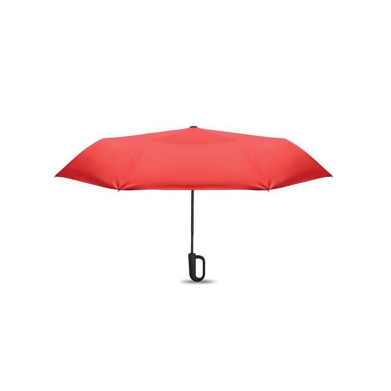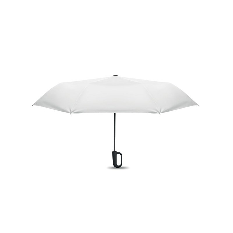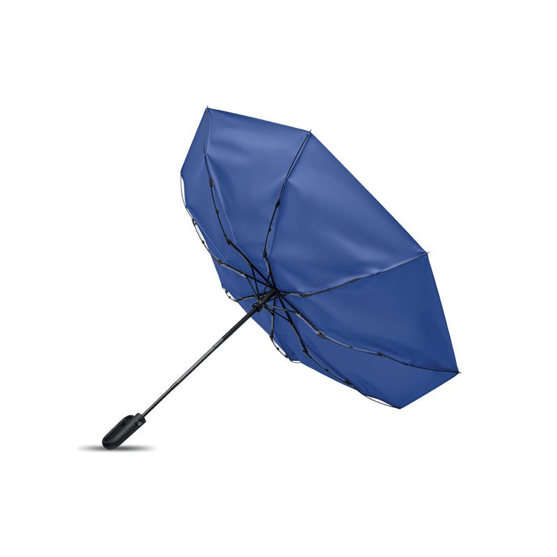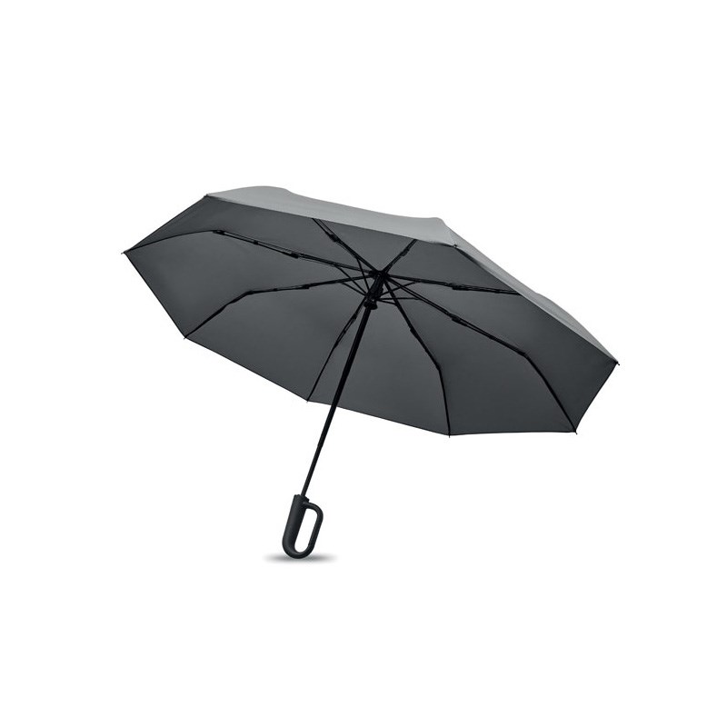Sklopivi kišobran od 21 inča otporan na vjetar.Ručka u obliku slova D s gumenom završnom obradom. Automatsko otvaranje i zatvaranje. Uključuje torbicu.
