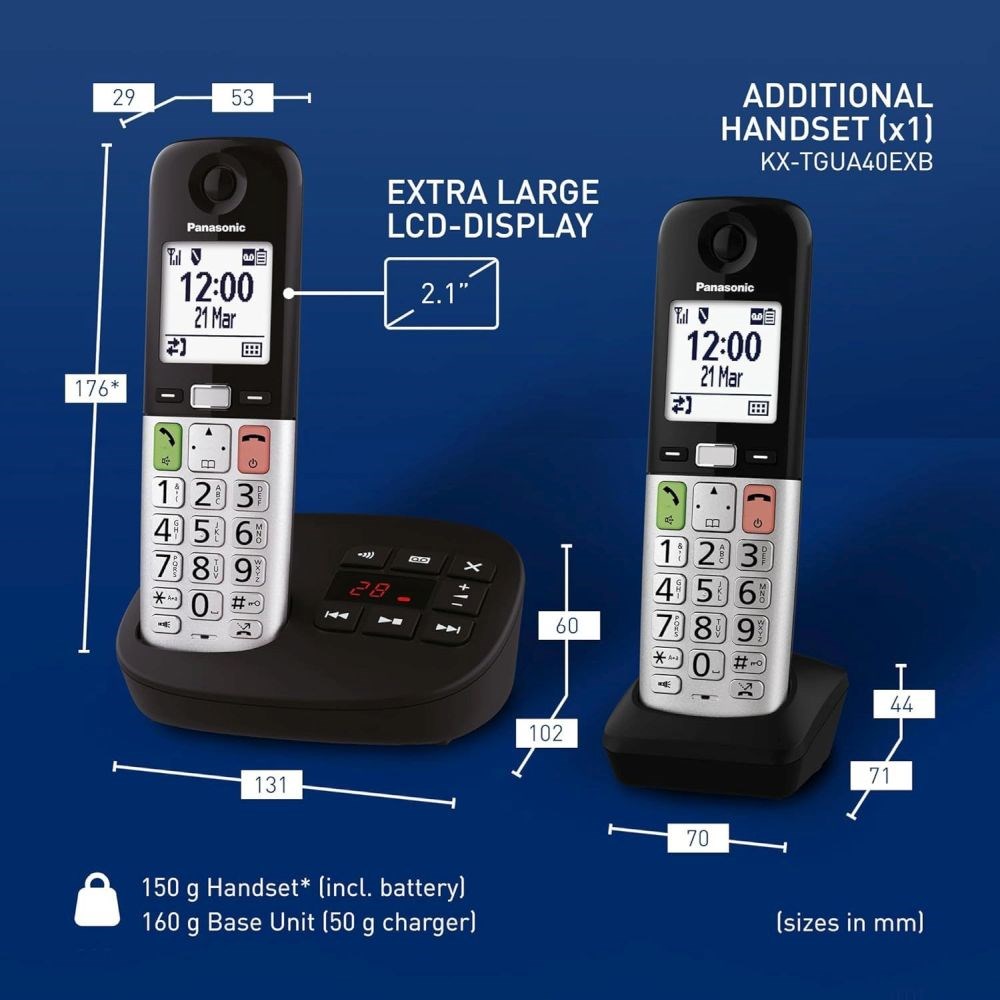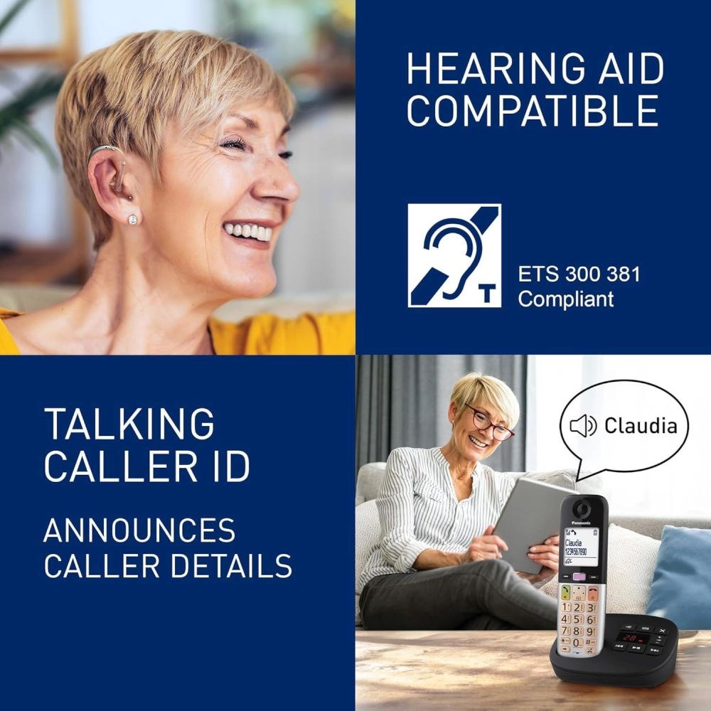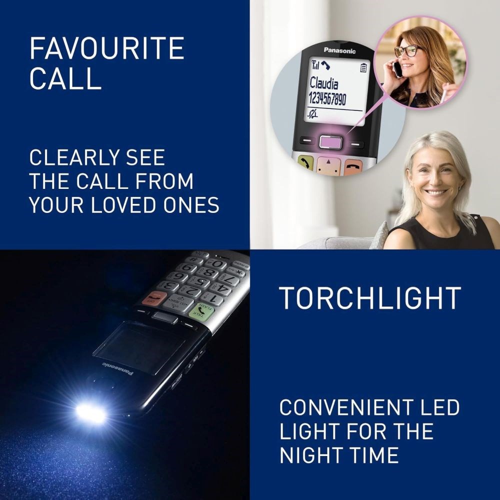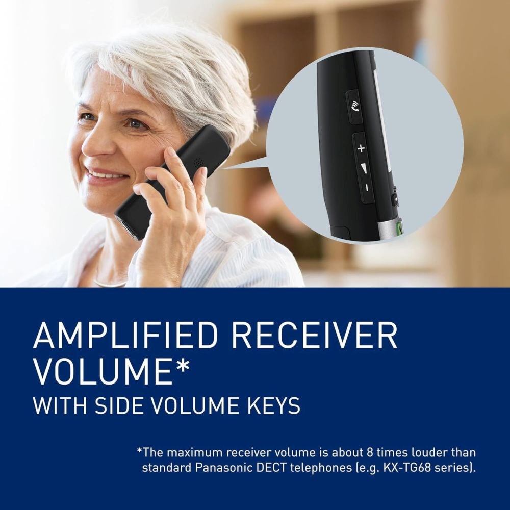 Digitalni bežični telefon s telefonskom sekretaricom (do 20 minuta), velikim osvijetljenim 2,1-inčnim zaslonom, velikim osvjetljenim tipkama, pojačanom glasnoćom (8x glasnije od standardnih DEKT telefona), funkcijom omiljenih poziva (možete spremiti do 3 broja), praktičnom svjetiljkom, raznim funkcijama blokiranja poziva – pomoću specijalne tipke i automatski, (zahtjeva Caller ID aktivaciju kod operatera) i podrškom za kompatibilnost sa slušnim aparatima.