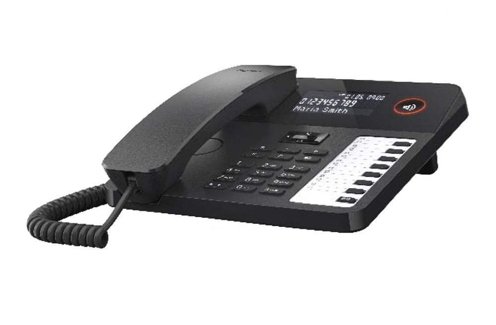 Komforni telefon s handsfree funkcijom koji ima prikaz poziva (CLIP) i telefonski imenik za 100 kontakata s vlastitom melodijom za dodijeljene VIP kontakte. Ima direktno biranje za 7 x 2 brojeva, ponovno biranje zadnjih 32 broja i popis pozivatelja za zadnjih 50 poziva