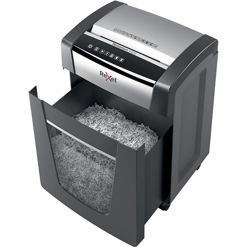 Rexel Momentum X420 je idealan uništavač za male uredske uporabe. Uništava do 20 listova odjednom i radi neprekidno 4 sata.